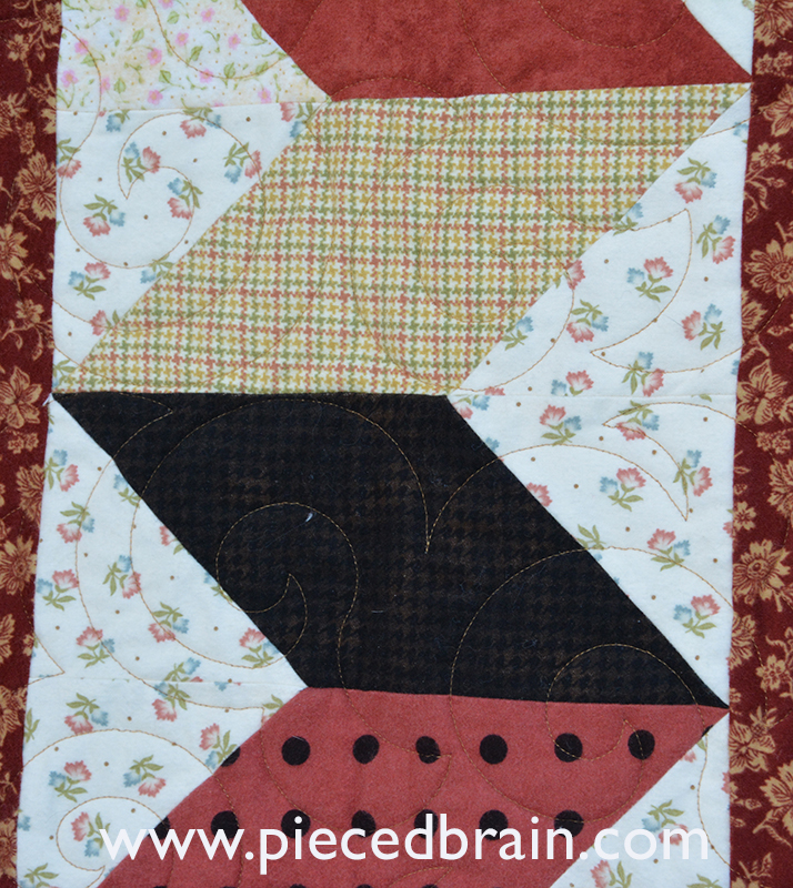 It was quilted by Melissa at Sew Shabby Quilting. I gave her the quilt and asked her to choose a quilting design – she has terrific taste and skills. I did not want the quilt to be heavily quilted and she picked the perfect motif. I am so happy with how it turned out!