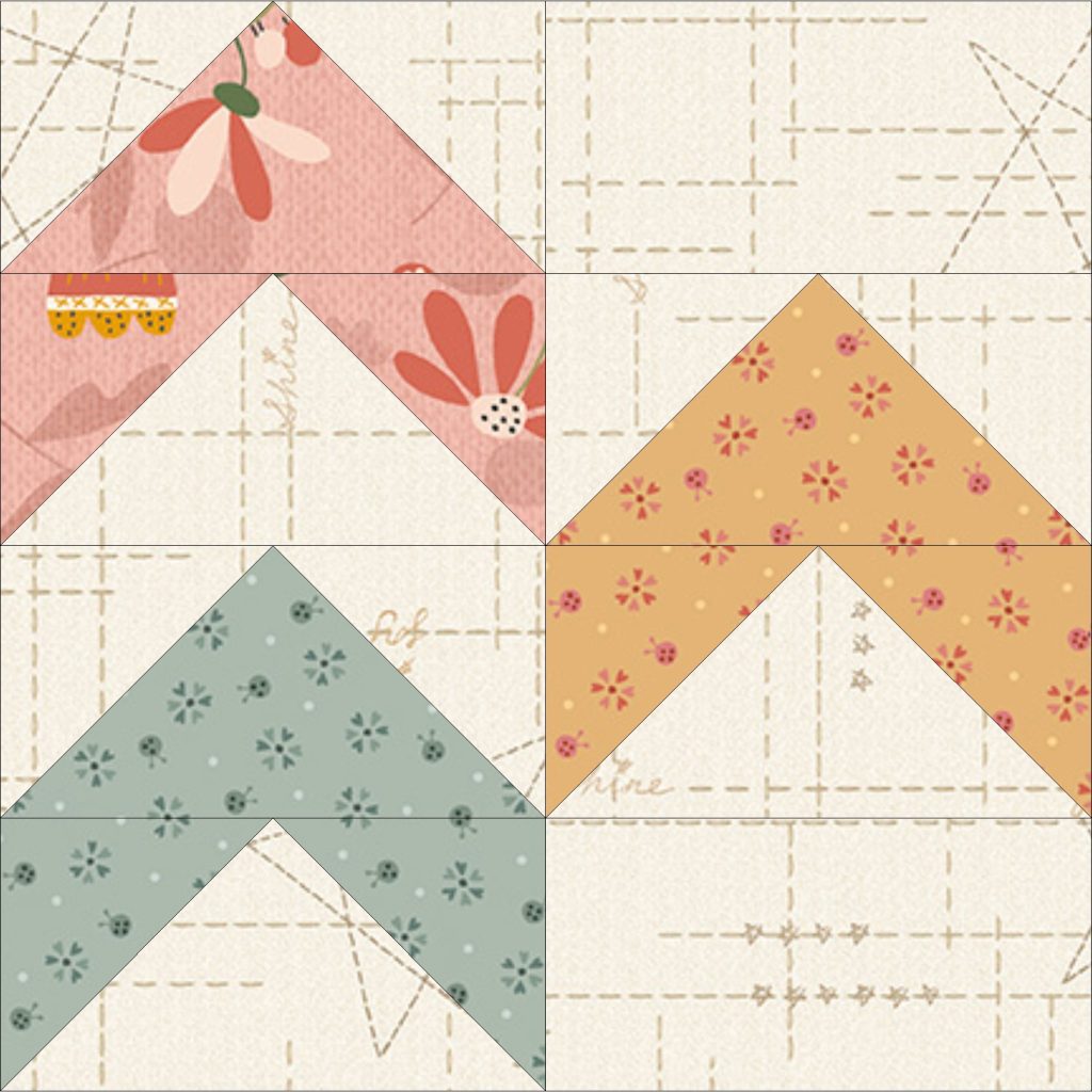 The colors in the Love Bugs collection are romantic and soft, reminding me of a calm day spent puttering around the garden. The amazing textures and varied scale of the prints are a quilt designer’s dream! Janet Nesbitt is a veteran fabric designer, so she knows what to include in her collections to help us make gorgeous projects. I am sure you’ve made quilts with her darling fabrics!