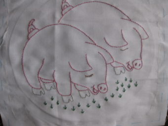 The pigs are fresh off the embroidery hoop! Adding the grass seemed to make sense to me (I decided against mud quickly), so there it is. Next will be the giraffes. As I embroider, I feel calm and relaxed. Seating on a comfortable chair in my bedroom, feet resting on the ottoman, I take turns dreaming of the little grandchild who is coming next month, and listening to music or an audiobook. My motherly [nagging] instincts are on overdrive, as Michael and Daniela finish school, have a baby, and … [Read more...] about Noah and the pigs