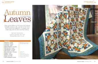 Photograph by Charley Lynch for American Quilter Magazine. Used with permission. This morning I have my office window open as the temperature is a cool 59F, a hint of what it will be like come Autumn (never mind that later today the temperature will climb to the 90sF!). The cool air inspired me to share with you my quilt, Autumn Leaves, which has been published in the September 2018 issue of the American Quilter magazine. Autumn Leaves measures 79.5" x 97" and the blocks finish at … [Read more...] about Autumn Leaves Quilt