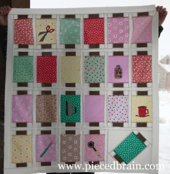 Yeah! I put together the quilt top for my Spools quilt! I have yet to quilt it but I wanted to show you how cool the blocks look stitched together. The quilt measures 38-3/4" x 42-1/4" and the blocks finish at 5" x 9". I followed the spool instructions from Peta Peace's book A Piece of Cake - Sweet and Simple Quilts from Layer Cake Squares published by Martingale. All the fabrics are by Riley Blake Designs - the fabric line is called Apple Farm by Penny Rose Fabrics. I am glad I chose … [Read more...] about Spools Quilt