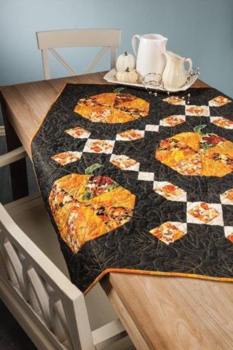 Photograph by Ryan Hake and Shane Pequignot for Annie's Publishing. Used with permission. "Pumpkin on my Patch" is the second of my designs published in the Autumn 2017 issue of Quilter's World magazine. This time I used bright, shiny, warm Fall fabrics from the Falling for You screenprint collection by Hoffman Fabrics. Its prints are ideal for October/November holidays so you can keep this table topper on your table for many weeks. It measures 48" x 48" and uses 2 blocks. The stem was … [Read more...] about Pumpkin Table Topper