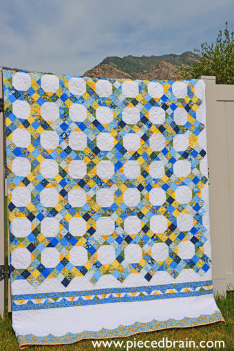 Do you remember earlier this year when I reviewed the book "Sew Charming - Scrappy Quilts from 5" Squares" by Mary Etherington and Connie Tesene? I immediately quadrupled one of the patterns to make a quilt for my bed. I finally added a narrow, pieced border, and an appliqued border... ... and sent it to Melissa from Sew Shabby Quilting so she could work her magic for me. It is so happy and perfect for the warmer temperature. It is huge: 94" x 101". It took me a few hours to hand bind … [Read more...] about Scrappy Nine Patches Quilt