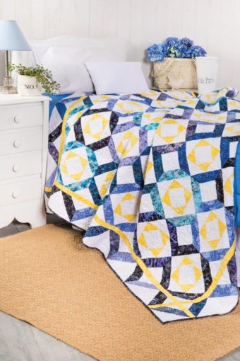 Photo by Matthew Owen for Annie's. Used by Permission. Happy Monday! Just got my "Spring Fest" batik quilt which was published in the Spring 2017 issue of Quilter's World. So glad to have it back! I loved working with Hoffman Fabric's batiks! This quilt features the Blue Hawaiian Bali Poppy collection with a wonderful palette of blues and lavenders, against a background of their Snow batik. The yellow is reminiscent of the center of the flowers... I assembled the blocks using the Strip Tube … [Read more...] about Spring Fest batiks