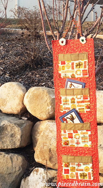 One more project ready for Christmas. Reds and greens are my favorite Christmas colors (pardon the colors in this photo - no way to fix it!). The background is from JoAnn's and I've had it for quite a while. I love the ric-rac that my Mom sent me from Brazil and thought I would use it for hanging the card holder. It is stitched to the background and covered with the yo-yos and buttons. Cute fabric for the pockets! It is from the 'do not cut ever' stash, but every once in a while I gather … [Read more...] about Christmas Card Holder