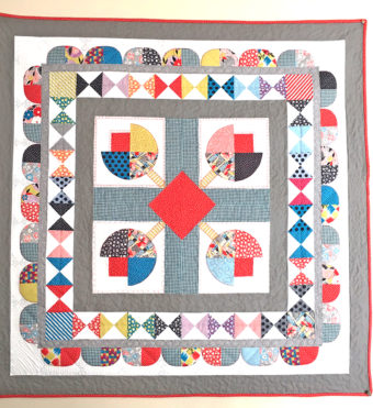 As I promised in my previous post, here is Lisa's quilt. Doesn't it look gorgeous? The pattern for her center block is called Flower Patch by Thimble Blossoms. Deb added the large gray border and the HSTs on point. I added the narrow gray border, the 1/4 circles plus the large gray border to wrap up the design. Lisa did a great job quilting it... and the result is a bright, fun round robin wall hanging. Round Robins can stretch us a bit and I love it. Have you ever been part of one? Speaking … [Read more...] about Round Robin