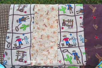 My daughter-in-law is staying with me overnight on Wednesday, and she is bringing baby Alex with her - yes!!! So I spent the weekend working on a few gifts for him. Above is a baby flannel blanket with cowboy theme... ... and pirate-themed fabric on the back - I had to have the major boy stuff covered! The blanket is super soft... My 16-year-old son did not want to let go of it when I showed it to him (I promised not to publish his picture with the blanket). It has no batting yet I quilted … [Read more...] about Baby Bliss