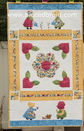 I am calling this wall hanging "Age Old Lesson"... It all started with the middle block which was going to be used in a round robin quilt. However, the block measurements were off a little bit so I decided to turn it into a wall hanging instead. Then, as I thought about adding more applique to it I went to my library in search of one of my favorite books with Sunbonnet Sues. The book "Precious Sunbonnet Quilts" by Betty Alderman has beautiful designs for embroidery and applique quilts. I chose … [Read more...] about Sunbonnet Sue