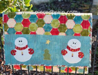 How about a fast table runner for Christmas? One long rectangle of your favorite print, with Snow Buddies appliqued on both ends? I quilted organic lines on the applique area and lots of rectangles elsewhere. I used Aurifil 50wt thread for the blanket stitching of the appliqued shapes and for the quilting. The backing was pieced and it all come together very quickly. The facial features were drawn with fabric marker giving the snowmen a happy, chubby look. I like to hand stitch the binding so … [Read more...] about Christmas in August