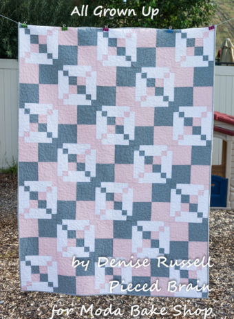 I can finally show you the quilt I had been working on for Moda Bake Shop! I had a lot of fun designing, piecing, and quilting it. All Grown Up, going from small 4-patches, to medium and then larger 4-patches... the growing patches symbolize the coming of age of little girls (or boys, just change the colors). Moda fabrics are so easy to work with! Very little fraying, soft hand, and Bella Solids have such amazing colors! This pattern would look great in a number of color trios. The free … [Read more...] about All Grown Up Irish Chain Quilt