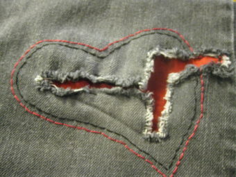 My youngest son, Ryan, asked me to mend his jeans for him. They are one of his favorites - the other one is just like this one! He actually told me how he wanted me to do it. At first, I thought he wanted me to cut out fabric and sew it on top of the rip (or I could use one of those patches that we glue on the pants). Well, this is what he wanted: I call it "Ryan's broken heart jeans"... Now, he wants me to fix the other one, too. I wonder how long this 'patch' will last, and also wonder how … [Read more...] about Creative mending